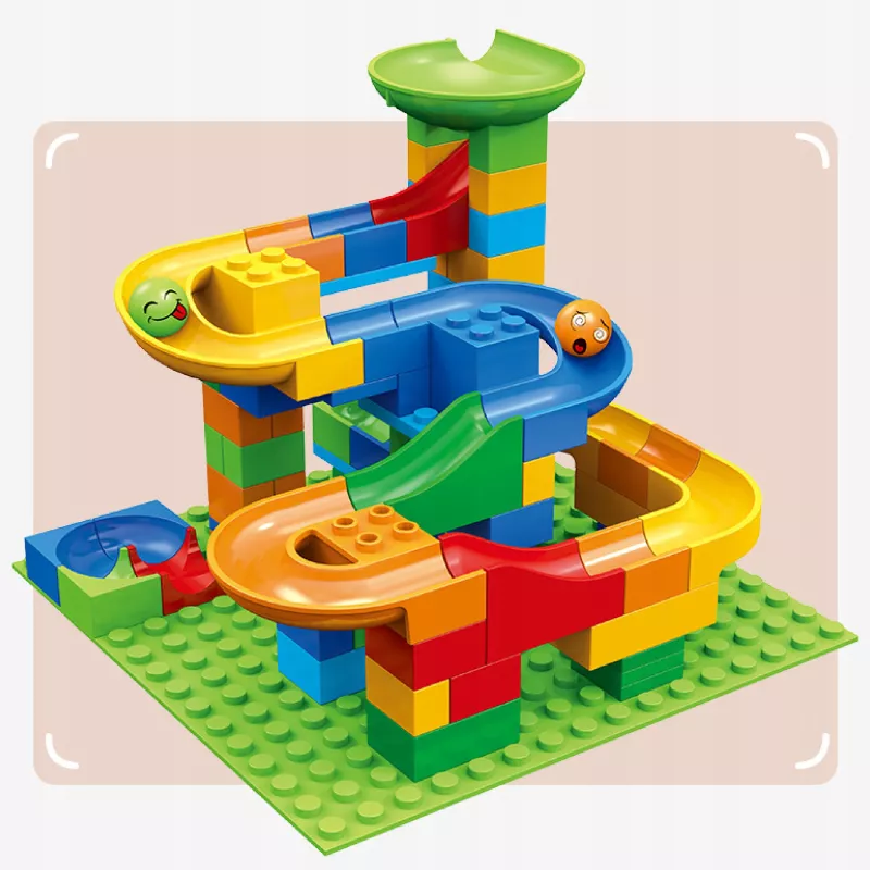 Zestaw zawiera liczne elementy konstrukcyjne, takie jak zjeżdżalnie, mosty, kolumny, spirale, kołowrotki oraz kominy, które można dowolnie łączyć. Mnogość możliwych kombinacji zapewnia wielogodzinną, angażującą zabawę.