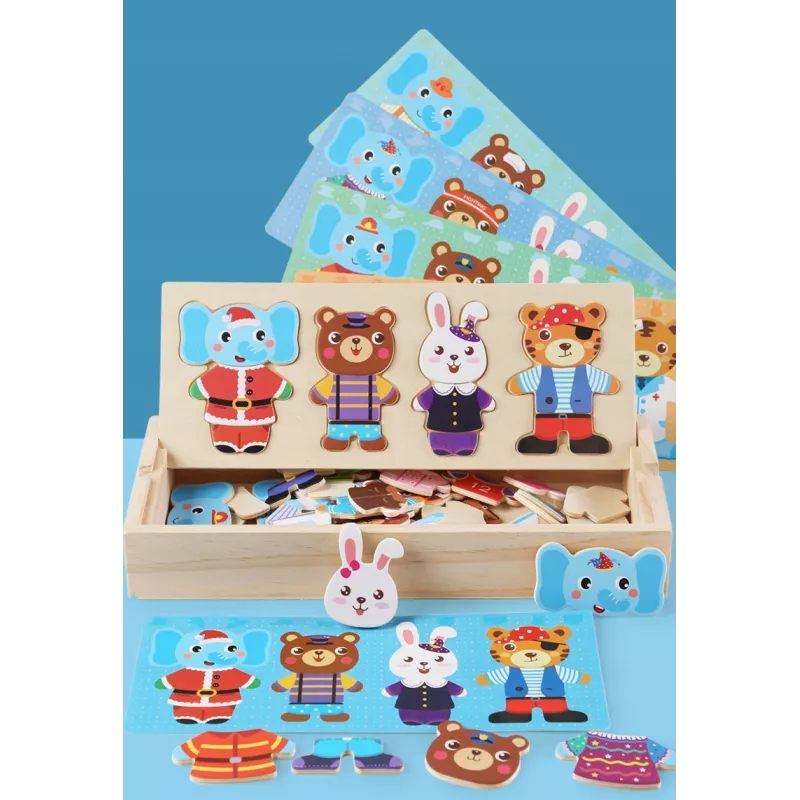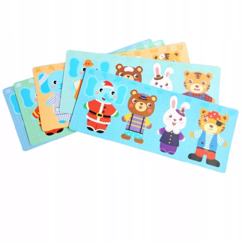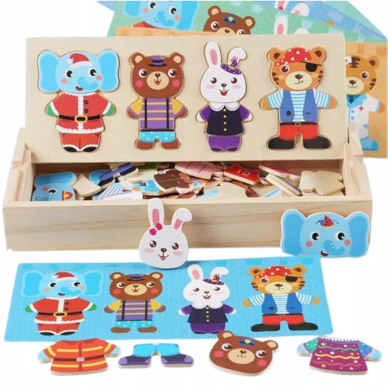 Ubierz zwierzątka i stwórz rodzinę pełną emocji – drewniana układanka 74 el.