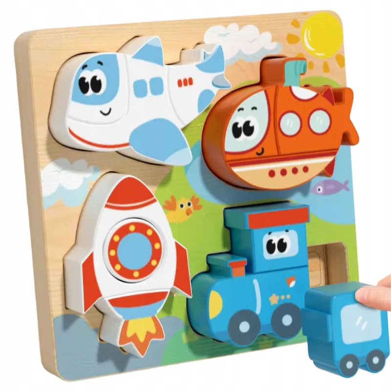 Drewniana układanka z pojazdami to świetny prezent na urodziny, święta, Dzień Dziecka lub jako pierwsza zabawka edukacyjna, która łączy klasykę, bezpieczeństwo i rozwój.