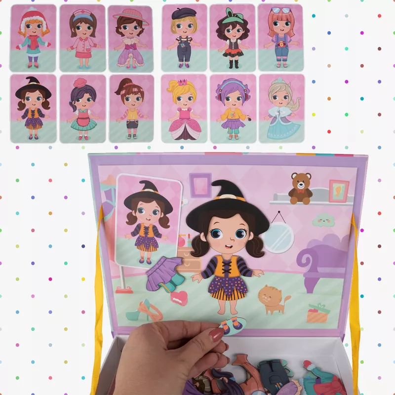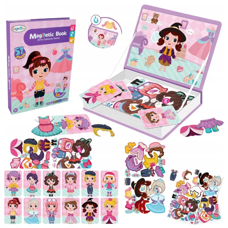 ✅ Kreatywna zabawka magnetyczna w formie książki – idealna dla małych miłośniczek mody
