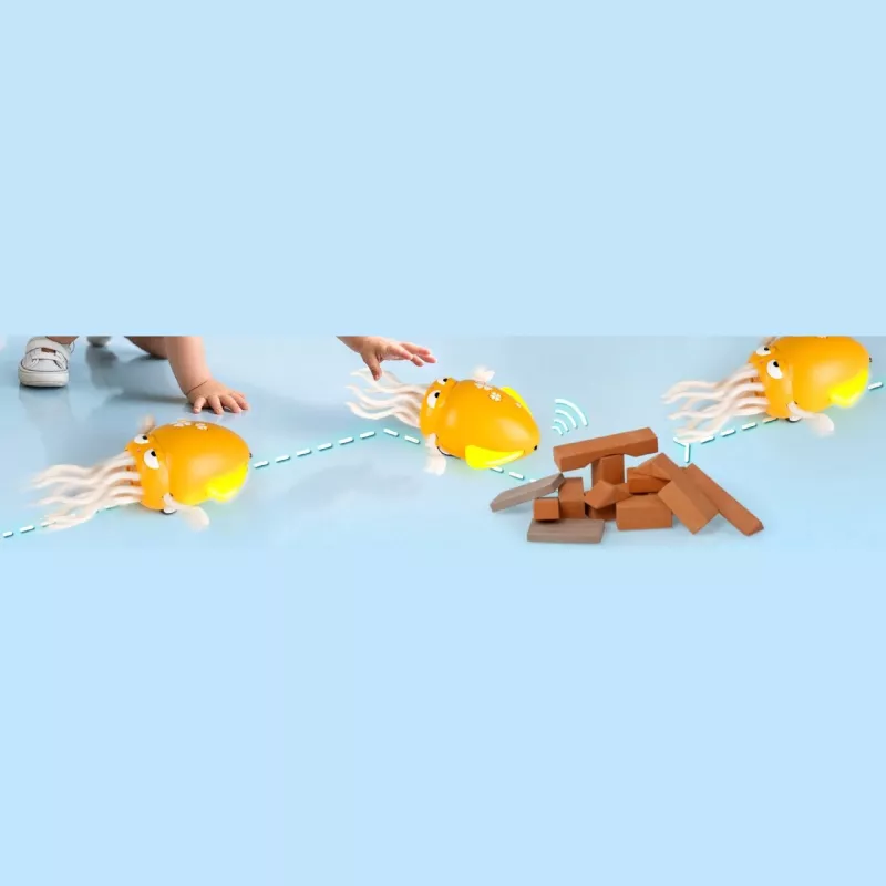 Dzięki synchronizacji ruchu z efektami świetlnymi i dźwiękowymi zabawka silnie stymuluje wzrok i słuch dziecka, wspierając rozwój sensoryczny.