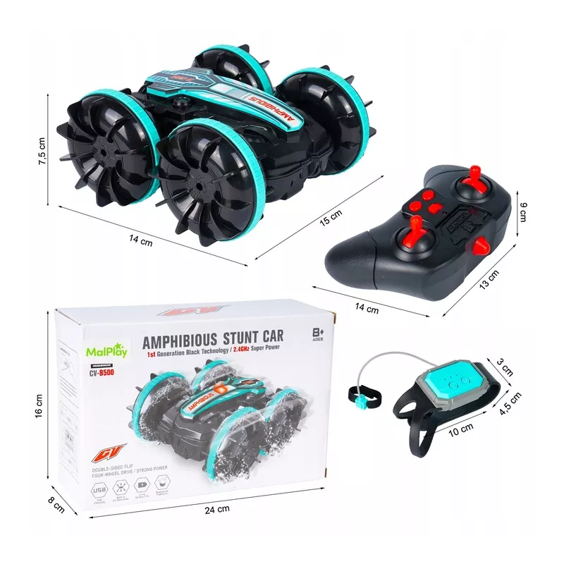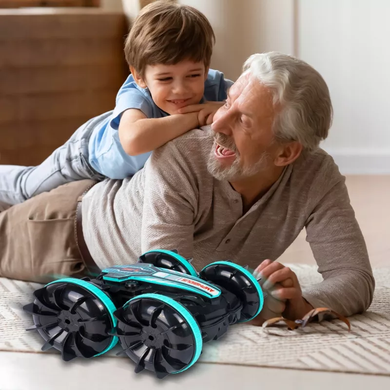 Auto wykonuje salta 360°, piruety i drifty, dając widowiskowy efekt kaskaderski i gwarantując długie godziny fascynującej zabawy.