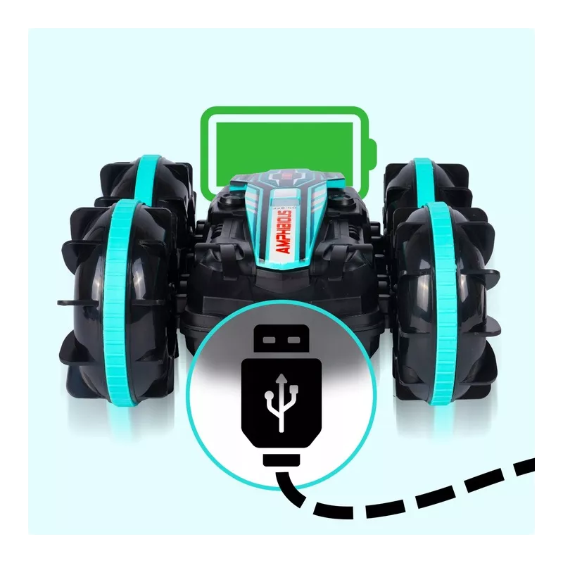 Auto zasilane jest akumulatorem ładowanym przez USB – podłącz je do powerbanku, komputera lub ładowarki i baw się dalej!