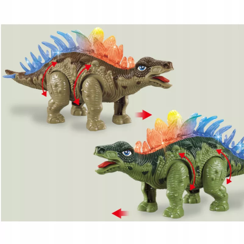Interaktywny dinozaur Stegozaur to efektowna zabawka dla dzieci, która łączy ruch, światło i dźwięk, zapewniając dynamiczną i angażującą zabawę. Realistyczny wygląd, podświetlane kolce LED oraz efekty dźwiękowe sprawiają, że zabawka przyciąga uwagę i pobudza wyobraźnię dziecka.