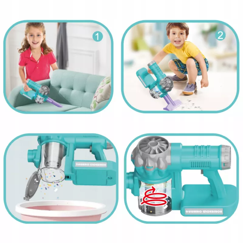 Odkurzacz zapewnia bezpieczną i kreatywną zabawę, jednocześnie rozwijając wyobraźnię, samodzielność oraz podstawowe nawyki porządkowe.